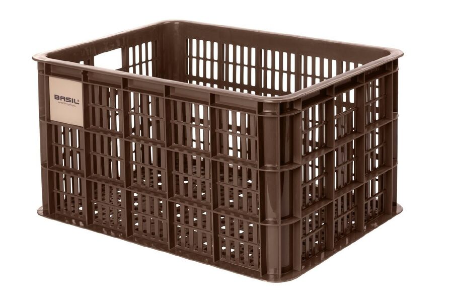 earching for a stylish and spacious storage solution? Look to the Basil Large Crate. With its substantial 40-litre capacity, this plastic crate, sporting a fashionable chocolate brown color, provides ample storage room. The crate is accompanied by a logo-emblazoned crate clicker, designed with contrasting colors to make a bold statement. Attaching the crate is a breeze, offering versatility in methods. Use the Basil Crate mounting set for a secure fixed position, or opt for an adapter plate if you wish to detach the crate. This adaptable crate is compatible with MIK and Racktime adapter plates, which can be procured separately.