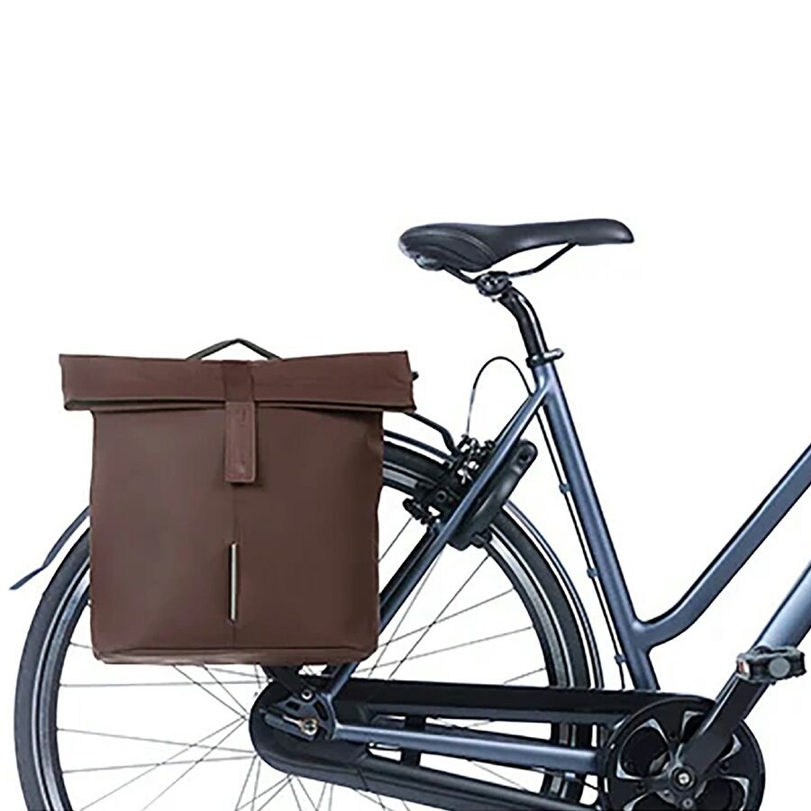 Crafted from vegan leather in a stylish roasted brown, this pannier prioritizes safety with reflective details on all sides and a mount for LED lighting. For those carrying heavy loads, the pannier can be paired with the Basil Distance Holder (sold separately), which prevents it from getting caught in your bike’s spokes.