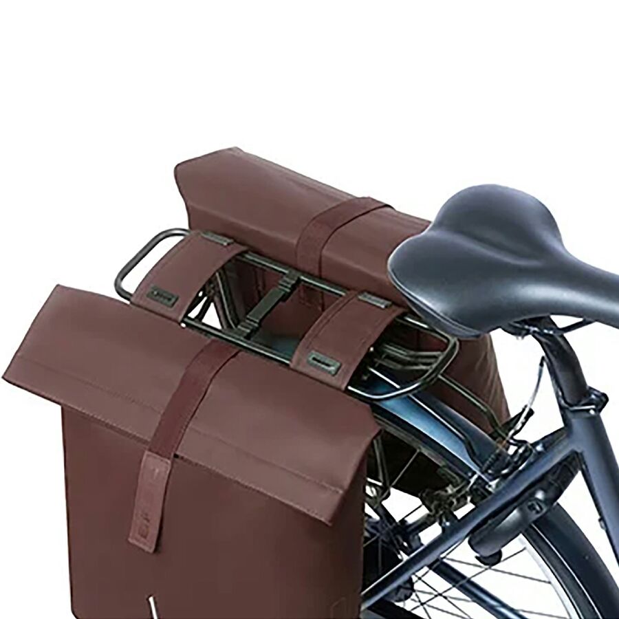 Attaching the Basil City double pannier to your luggage carrier is a breeze with the Universal Bridge system. You can use the pre-assembled straps, or opt for the Basil DBS system (removable luggage carrier plates) or an adapter plate like MIK, both of which are available separately.
