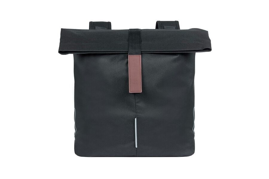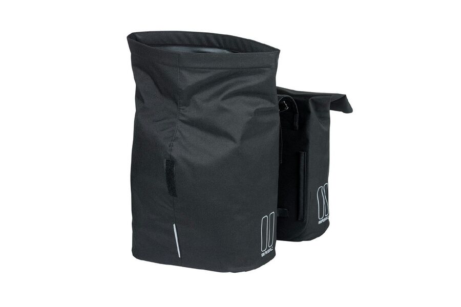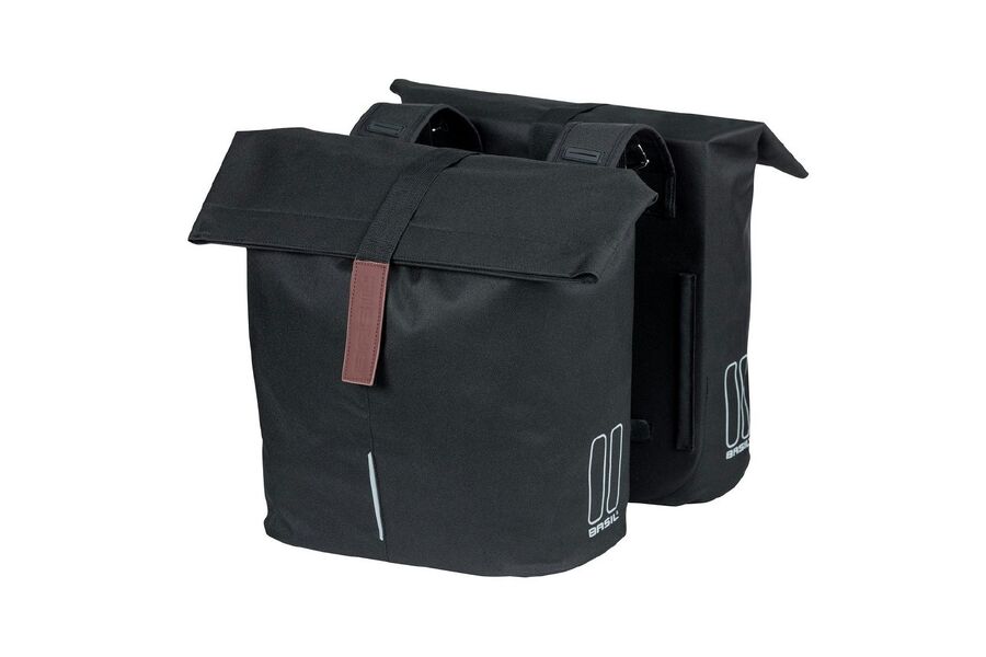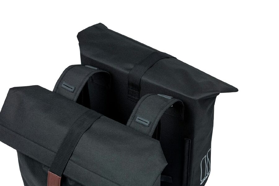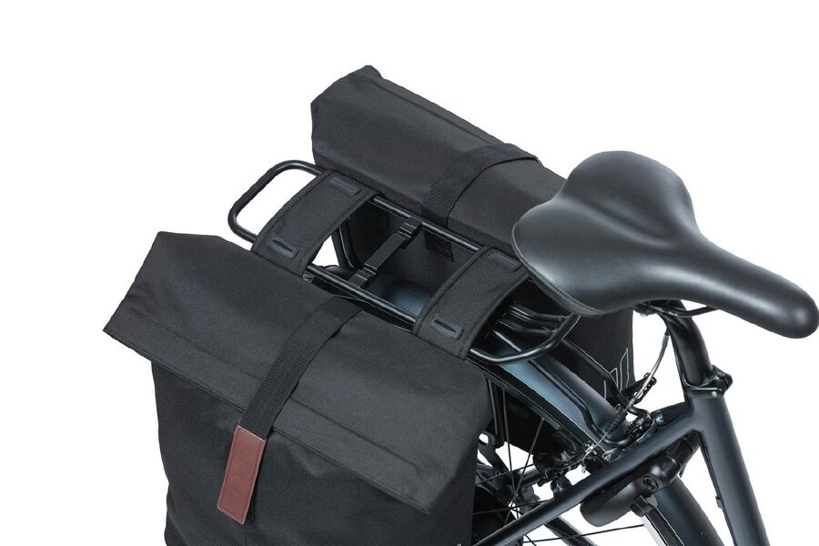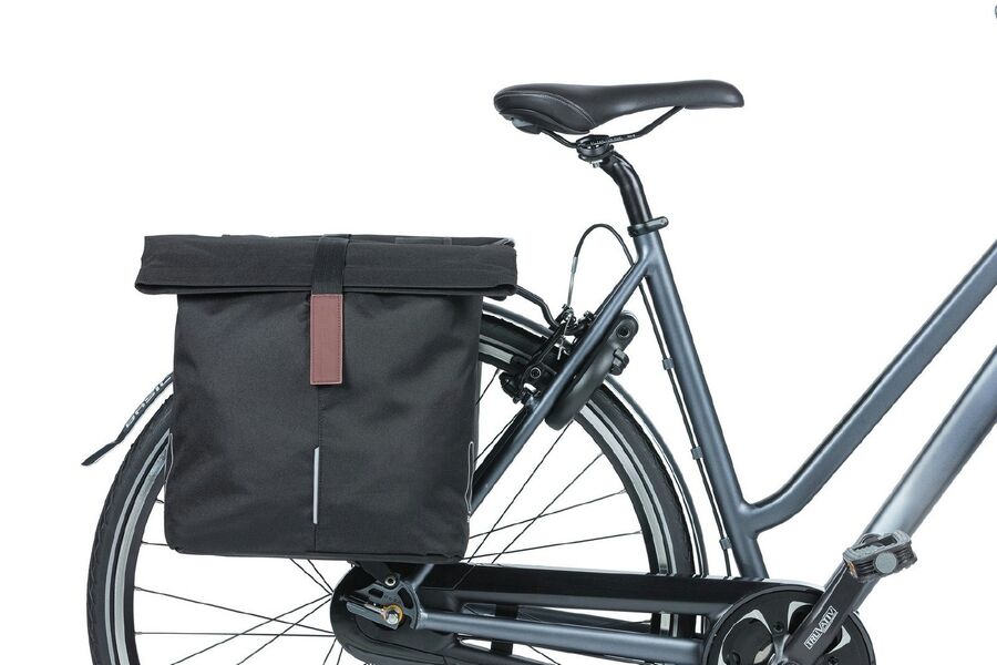 The Basil City double pannier perfectly complements the urban pace, adapting seamlessly to various aspects of city life: work, social outings, trips to the market, or shopping sprees. Designed with a balanced approach, this bike bag strikes the right chord – not overly bulky, yet remarkably roomy, boasting a generous 28-litre capacity. For those moments when a bit more space is required, a simple adjustment takes the capacity up to 32 litres. The height-adjustable folding clasp, featuring Velcro, serves a dual purpose: convenience and protection against rain.
