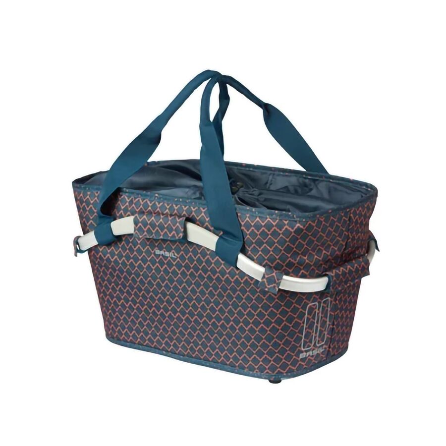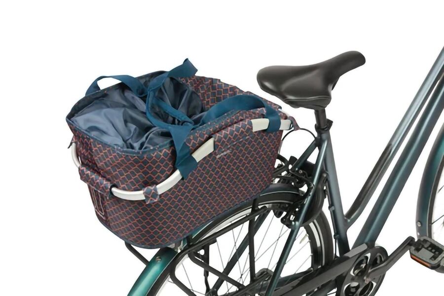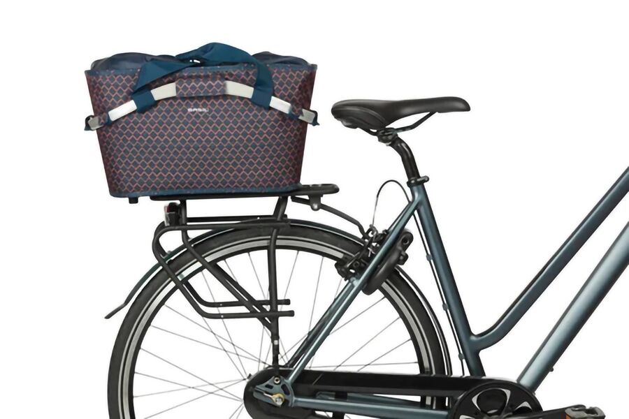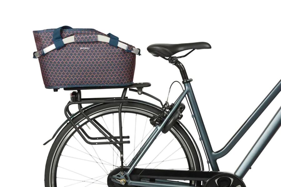 Introducing the Basil Flair Carry All Rear Carrier Basket MIK, your perfect companion for every cycling adventure. Whether you’re commuting to work or heading out for a day trip with friends, this basket combines practicality, style, and durability. Made from strong, water-repellent recycled polyester in a stylish dark blue finish, it features a vibrant 1970s-inspired print that adds a cheerful, eye-catching touch to your bike.