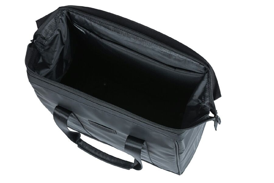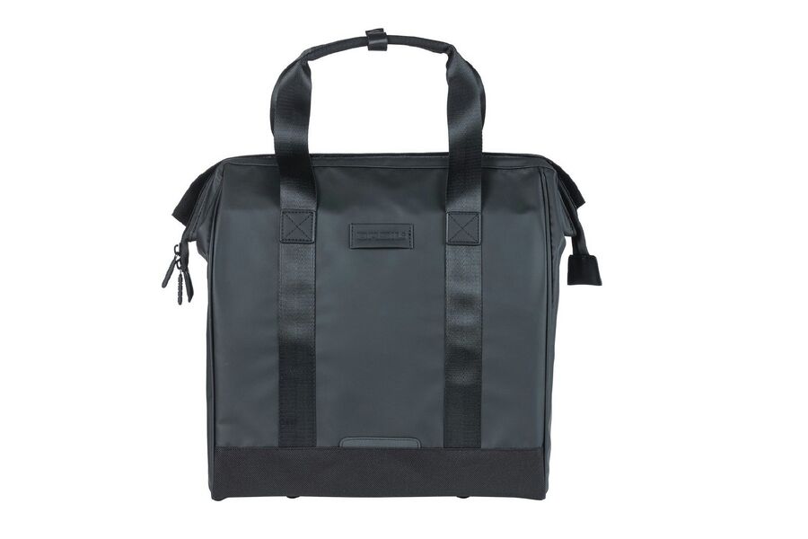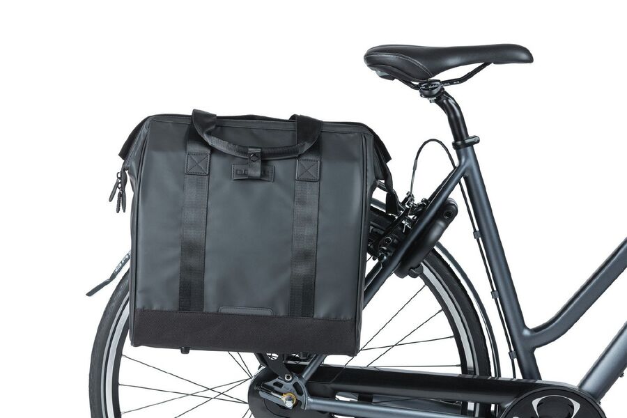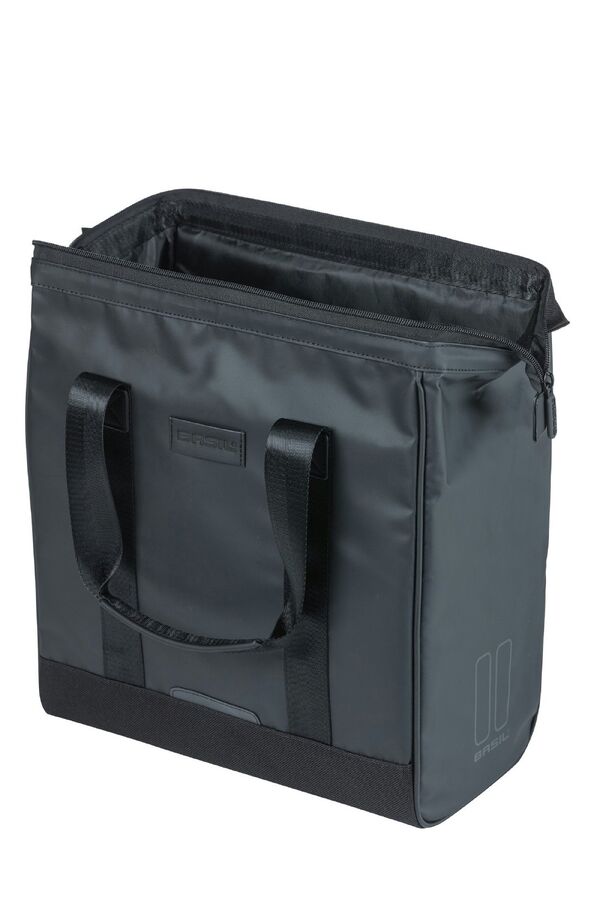 The Basil Grand bicycle shopper infuses shopping and various errands with delight. Its ebony hue lends it an elegant and opulent appearance. Crafted from robust tarpaulin, it boasts a capacious central compartment that incorporates a cushioned pocket designed for laptops. Whether it’s delving into university coursework or engaging in office tasks, it proves invaluable. With a voluminous 23-litres capability, it accommodates all essential groceries and shopping requisites effortlessly. Should you position the bag upright, you can even stow beverages securely within, the bag’s compact dimensions ensuring its form remains undistorted.