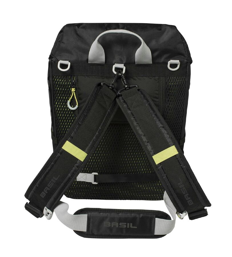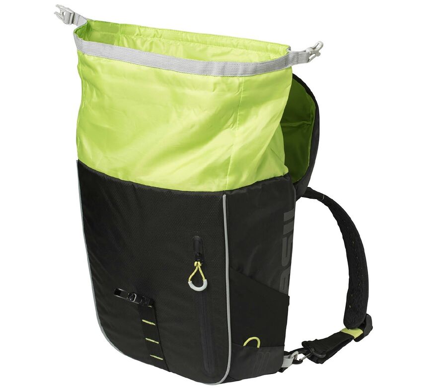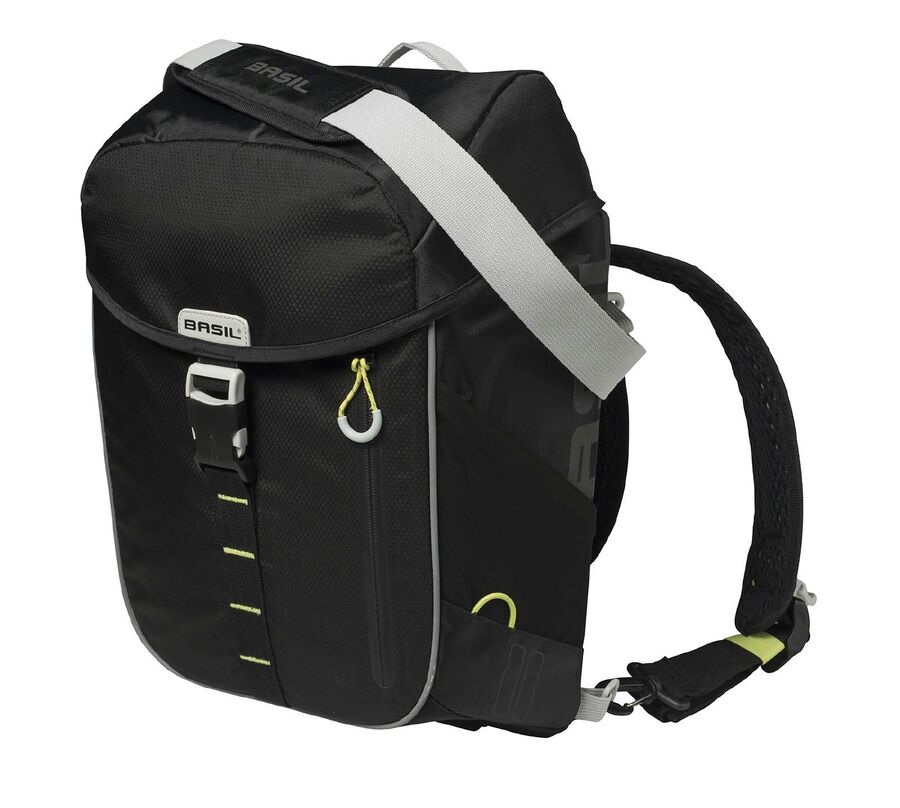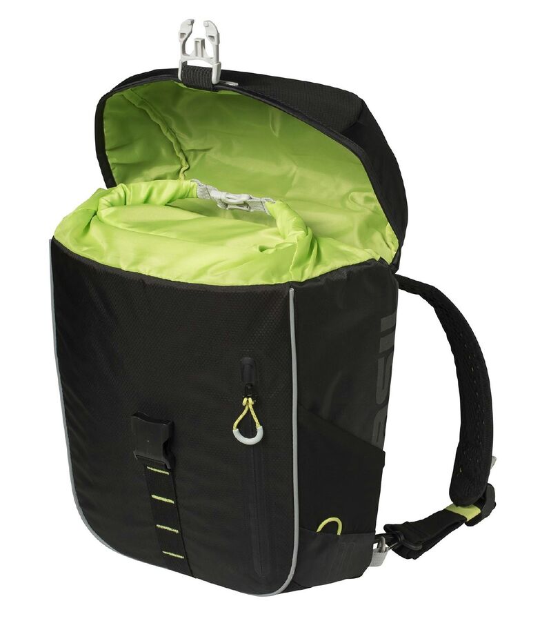 Crafted from waterproof polyester with a durable inner liner, this sporty bag ensures your belongings stay well-protected even in adverse conditions and can handle heavier loads. Its easy-to-fasten hook-on system allows quick attachment to your luggage carrier, and the reflective accents enhance visibility in low light. Once you’ve parked your bike, it’s effortless to remove and transform into a comfortable backpack or shoulder bag. For more designs from Basil, explore our complete range of bicycle bags and accessories available online today.