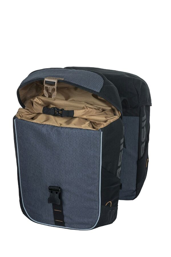 With a generous capacity of 34 litres, the Basil Miles Double Bag stands out as a remarkable waterproof pannier. Whether you’re embarking on a grocery shopping expedition or planning a bike trip through the scenic Ardennes, this bag is designed to enhance the convenience and enjoyment of your cycling experience. Its sleek dark gray / anthracite shade, complemented by tasteful brown accents, lends the bag a distinct sense of style. Even during rainy rides, the waterproof material guarantees that your bag’s contents remain dry. The bag effortlessly attaches to your luggage carrier, including e-bikes, thanks to the Basil Universal Bridge System. It’s also compatible with systems like Racktime, Carry More, and i-Rack. Notably, reflective details have been incorporated to enhance your visibility during nighttime rides, and there’s even provision for mounting LED lighting. The bag secures its contents with a combination of a roll closure and snap closure, while boasting a sturdy inner lining. It’s worth noting that this Basil Miles Double Bag is part of the broader Basil Miles collection. If you’re seeking a single pannier from this line, your search ends here.