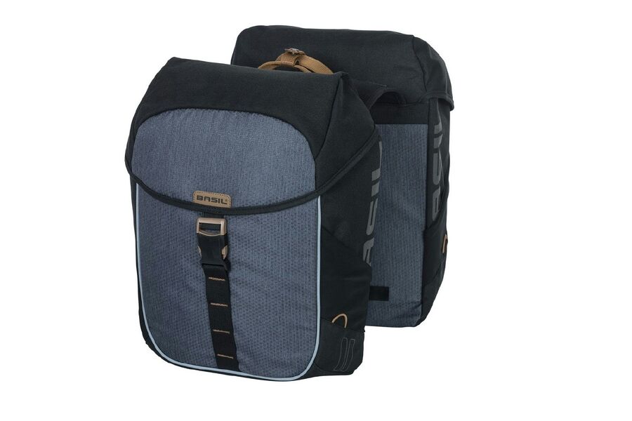 Imbued with a waterproof design and a capacious 34-litre volume, the Basil Miles Double Bag serves as an indispensable companion for cycling adventures. Presented in an elegant blend of dark gray and charcoal gray hues, this pannier seamlessly incorporates the Basil Universal Bridge System, ensuring effortless attachment to various luggage carriers, including e-bikes. The bag’s functional prowess is further accentuated by reflective elements, enhancing visibility during nocturnal rides, and it even accommodates the addition of LED lighting.