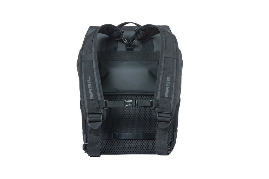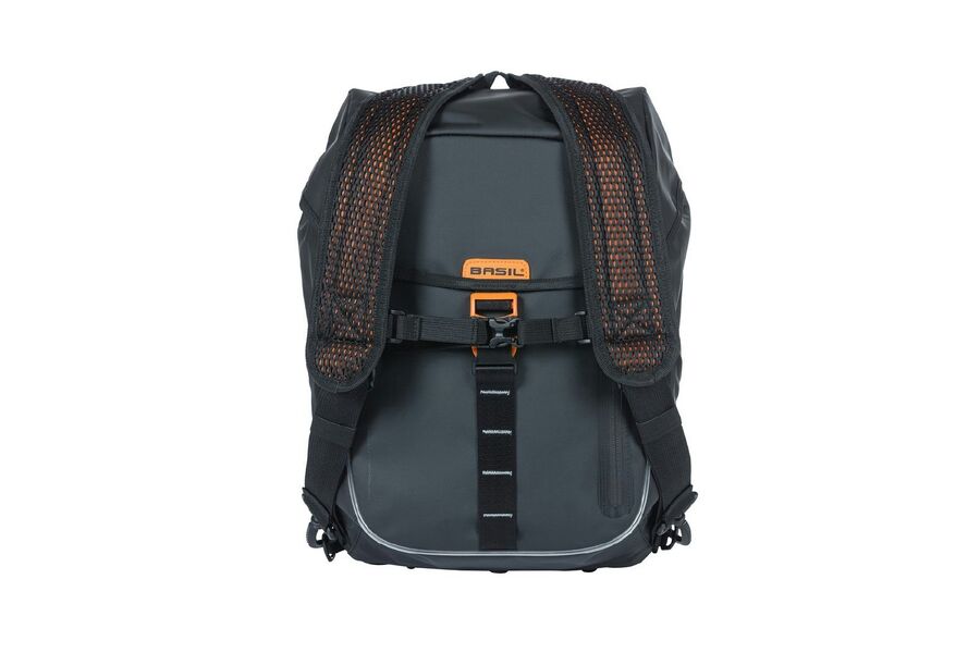 Looking for a versatile travel companion? Not just a backpack or a bike bag, but a hybrid solution that merges both? Introducing the innovative bike backpack – the perfect blend of functionality and sporty style! Experience the convenience of the Hook-On system, effortlessly attaching this bag to your luggage carrier. Whether your adventure takes you on two wheels or on foot through rugged terrain, the Basil Miles Tarpaulin bike backpack ensures comfort with its padded back and shoulder straps. Bid farewell to pre-destination sweat as you ride, and relish in the stability of a lighter load, making it an ideal choice for leisurely bike rides or cycling getaways.