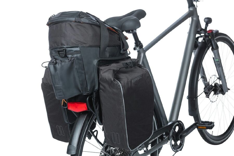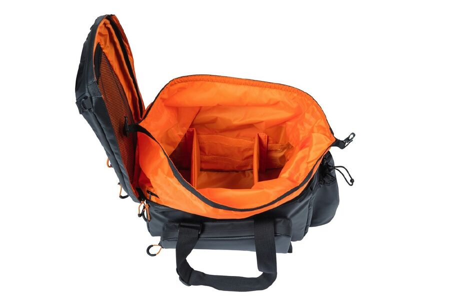 Experience the Basil Miles Tarpaulin XL Pro trunk bag is the perfect choice if you seek a well-thought-out bag with a sporty design that offers excellent waterproofing and practical features. With two foldable side pockets and an expandable top compartment, it provides a generous 9-litres capacity that can be expanded to an impressive 36 litres. The bag’s black color with orange details adds a stylish touch, and you’ll appreciate the additional insulated pocket for your water bottle and extra dividers to organize the main compartment. Keeping your food and drinks cool is made easy with two compartments designed for cooling packs.