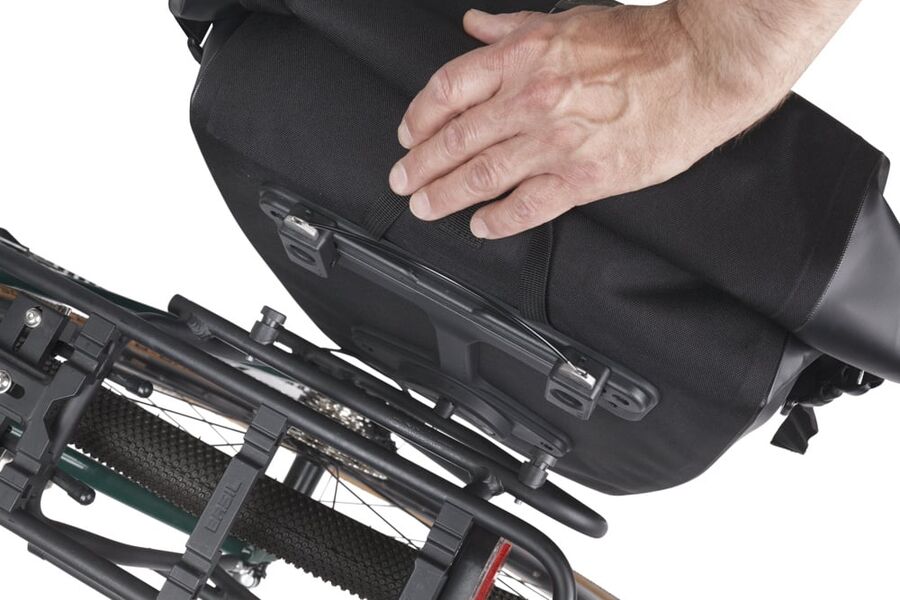 The roll-top closure gives you two ways to close—back or top—using flexible snap fasteners. Mounting is a breeze with integrated MIK Studs, or use the adjustable lower hook for added stability. Whether your rack has MIK points or not, you can still enjoy the benefits using a MIK Frame Adapter. Quick, versatile, and stylish—this bag is built for serious cycling freedom.