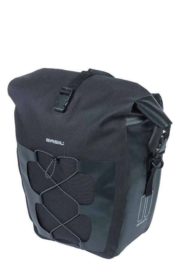 – The Basil Navigator Waterproof features a roll-top closure with an additional adjustable hook.