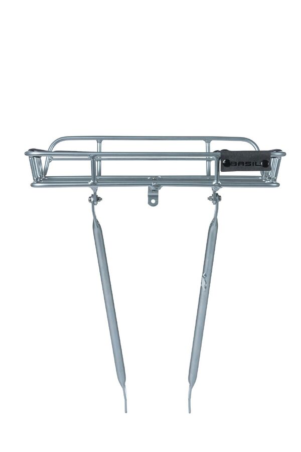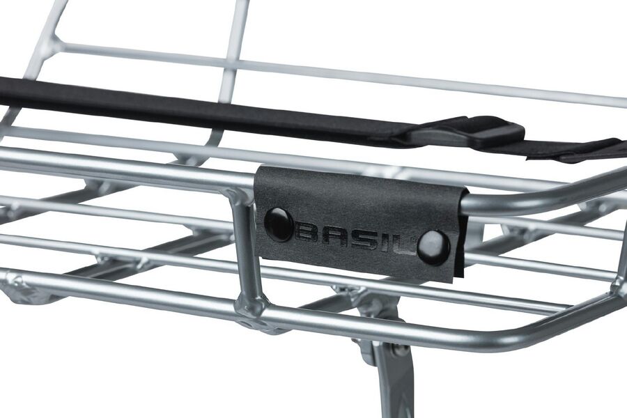 Introducing the Basil Portland Front Carrier High, a vintage-style carrier crafted from eye-catching aluminum. Designed to complement the Basil Portland collection, this carrier can also accommodate other similarly sized bags effortlessly. It features a removable strap at the front end to secure your bag or basket during rides, ensuring a smooth journey.