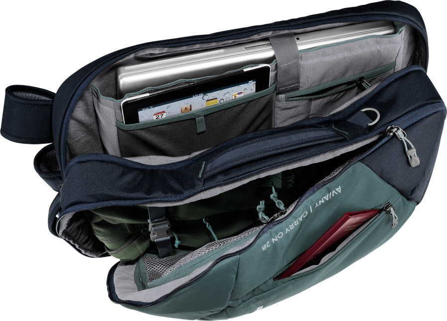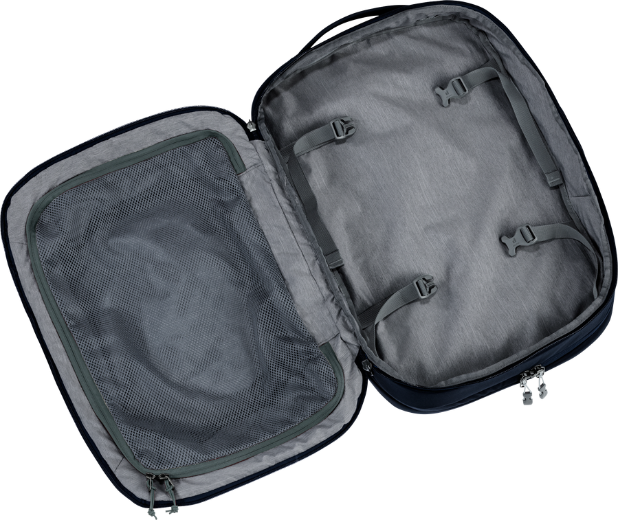 The functional Aviant Carry On offers high wearing comfort thanks to Contact back system. The organizational talent has a fold-out main pocket that provides quick access to the interior compartment. This has several compartments for secure storage of laptop, tablet, personal items and valuables, as well as a clothing compartment with mesh cover for separate storage. The backpack can easily be stowed as a carry-on bag thanks to stowable shoulder straps and padded handles.