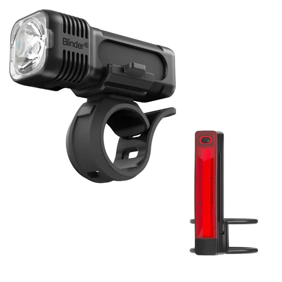 The Blinder 400/Plus Bike Light Set delivers the perfect balance of powerful front visibility and flexible rear lighting. Up front, the Blinder 400 features a compact yet rugged design with a 400-lumen output and a crisp, daylight-coloured beam to reduce eye strain on night rides. Its focused 18° beam cuts through the dark with precision, while a robust composite nylon body and 1850mAh battery ensure long-lasting performance. Out back, the Plus Light is Knog’s most versatile rear light ever (20 lumens) - mount it to your seat post or remove it and clip it onto your bag, jersey, or even your socks. No matter how or where you ride, this set keeps you visible and prepared.