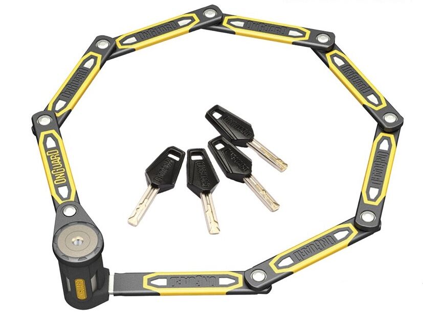 This unique lock combines near U-lock security with the ease of use and versatility of a cable lock. Remarkably compact the K-9 is constructed of hardened steel plates and features OnGuard’s pick, pull and drill proof Z-Cylinder. Once unfolded, the K-9 has the length to secure frames and wheels to a rack or other solid object. Included mounting bracket, mounts to most bicycle tubes for easy transport.