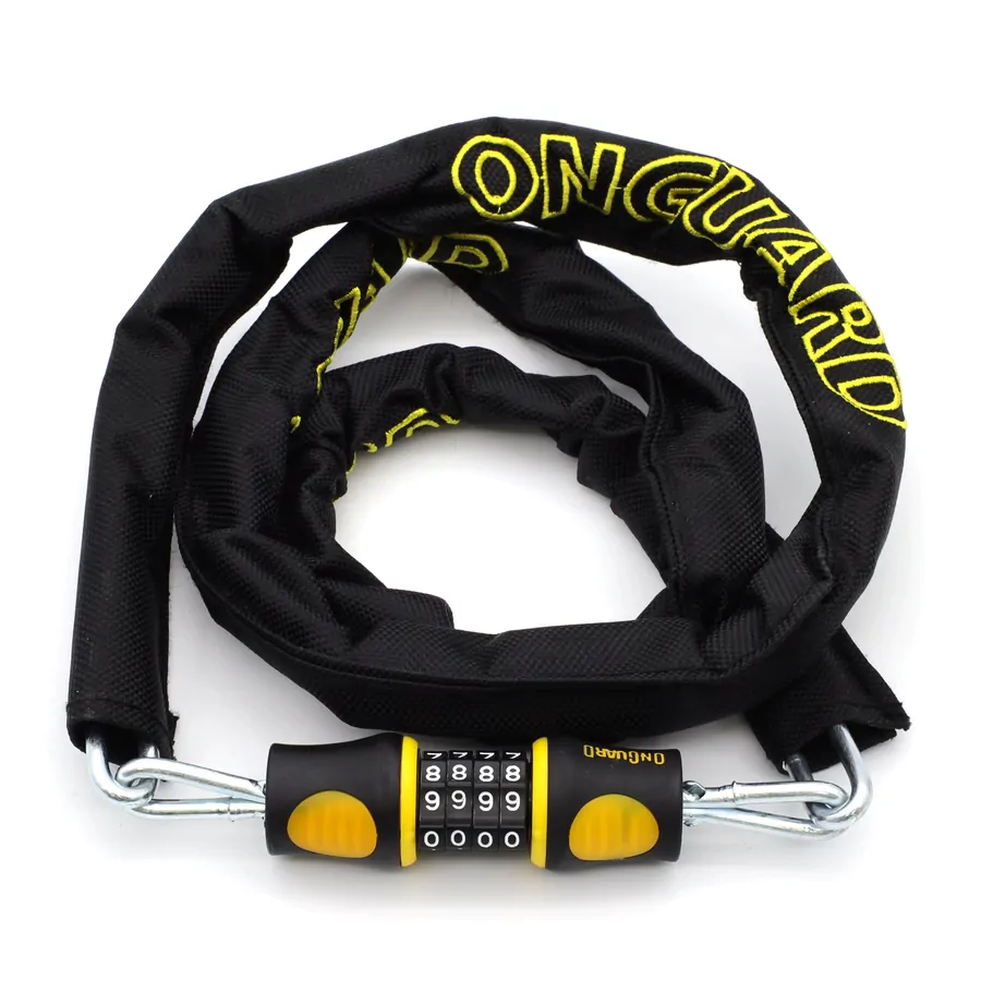 X4P Quattro Bolt Locking Mechanism locks shackle on four sides Titanium reinforced, hardened steel hexagonal link chain resists cutting or prying. Chain cover protects paint and finishes, embroidered logo won’t flake or wear off.