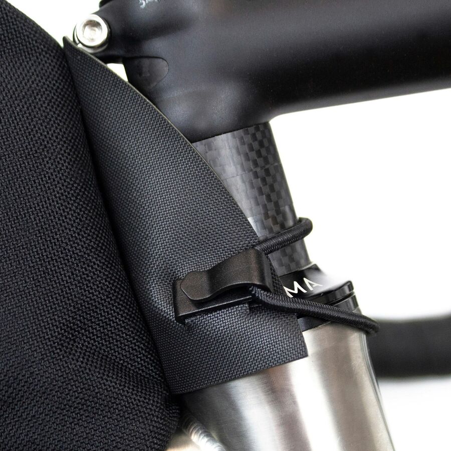 Perfect for short rides, commutes, or multi-day tours, the Restrap Bolt-on Top Tube Bag is designed to keep your essentials close. Made from 100% waterproof textured nylon and featuring a rugged YKK zip, it’s built to endure all weather conditions. Its universal headset fitting works seamlessly with all bike types, even those with low stack heights. The sturdy plastic base includes reinforced bolt holes, allowing a secure attachment to top tube bosses without the need for straps. Handmade in the UK and covered by a lifetime warranty, it’s finished with a vegan-friendly PU Restrap label.