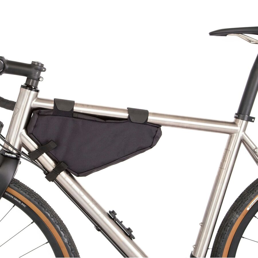Enhance your bikepacking setup with our frame bags, designed for increased load capacity and ultimate convenience. Available in three sizes, they fit any frame without the need for mounts or screws. Constructed from textured nylon, VX21 fabrics, and YKK zips, these bags are tough and reliable.