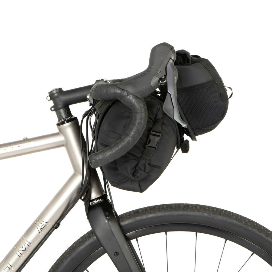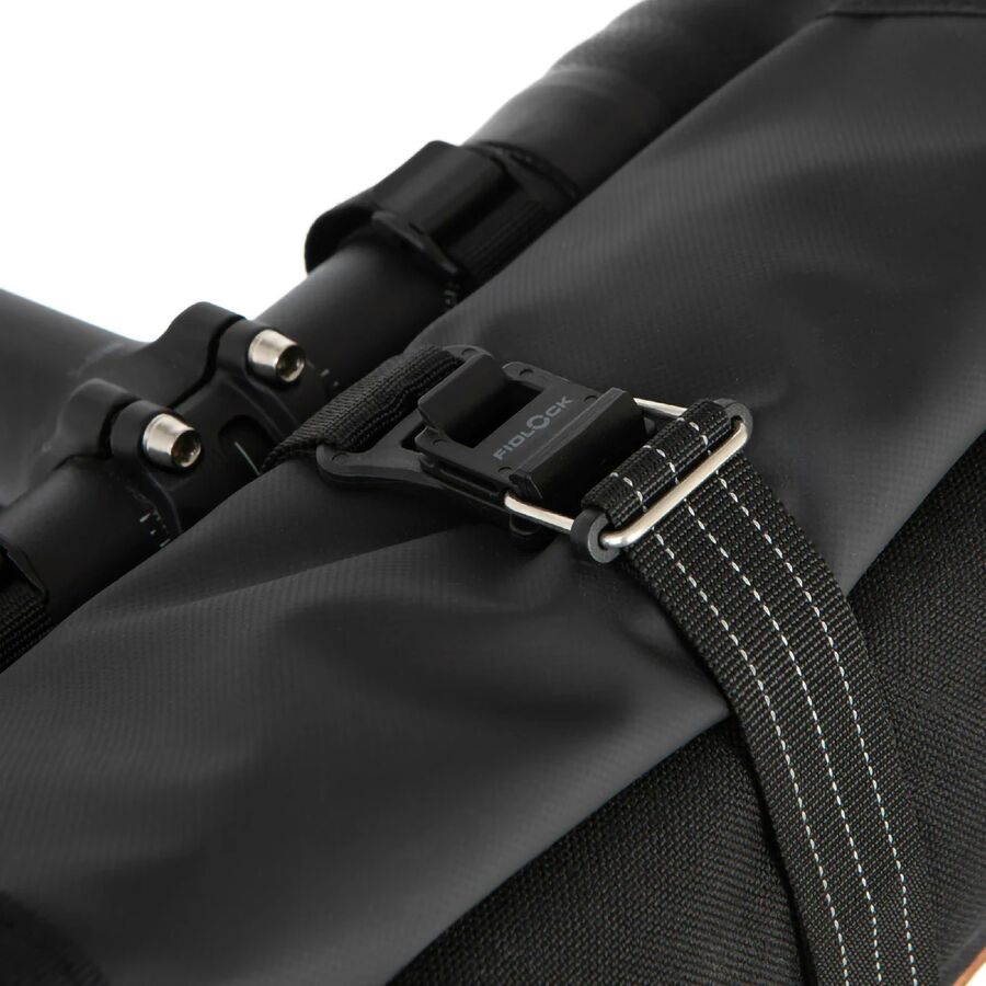 For minimalist setups, use the Holster Bar Bag solo. Need extra room? In seconds, the Rolltop Canister Bag attaches to the front via the 3P system, adding a fully waterproof 4L of extra space.