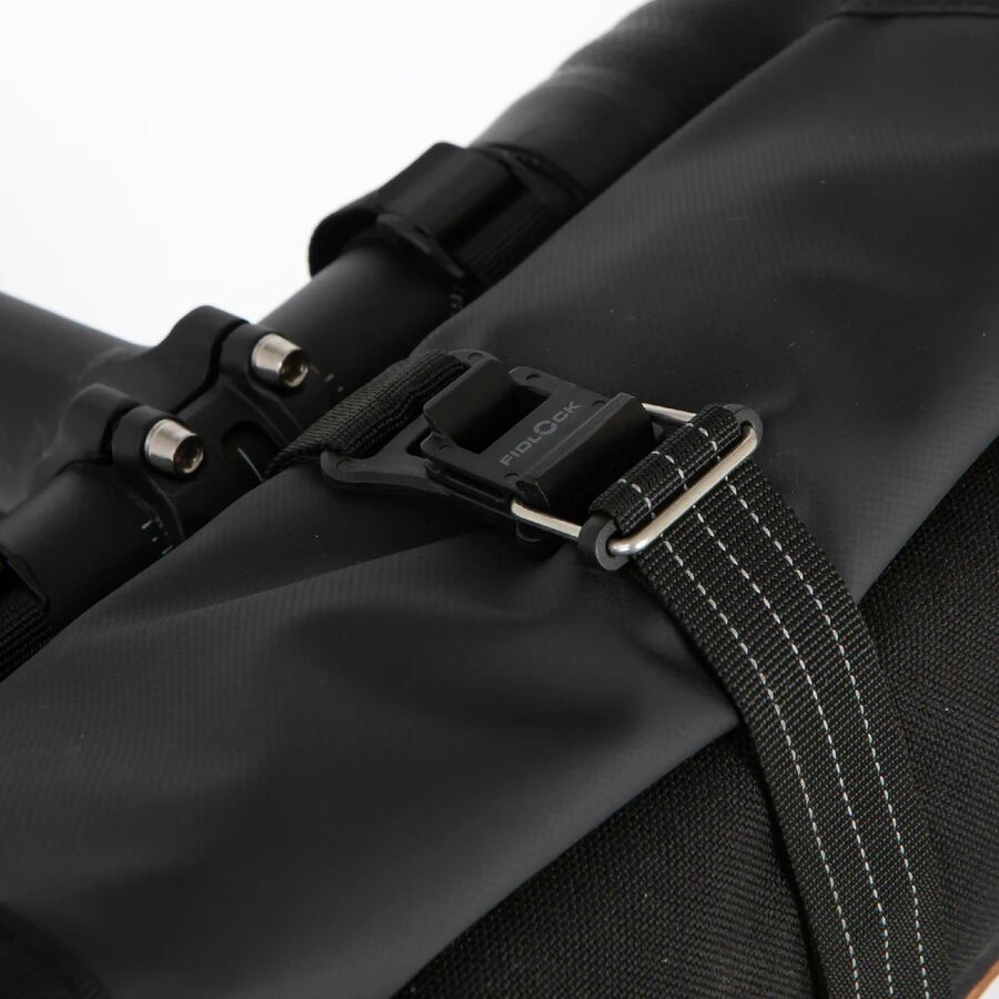 Webbing straps and an elastic toggle keep it secure on your bars, while a Fidlock buckle holds the rolltop neatly shut. One-handed access makes it quick and fuss-free. Mesh side pockets give you fast access to gels or other essentials.