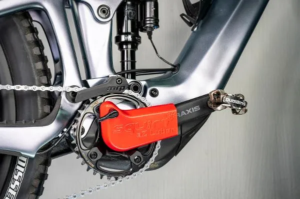 Lubricating the chain of an e-bike requires lifting the rear wheel to engage the drivetrain in a forward direction. This is cumbersome and can be difficult to do on one’s own. The Squirt eZ-Luber uses a turn hook to fix the crank to the chainring, making it possible to roll the drivetrain backwards, as one would on a conventional bike, to lubricate the chain effectively. This simple but innovative tool makes it easier to apply Squirt E-Bike Chain Wax to the inside of the chain, where it can best facilitate accurate shifting and smooth pedalling.