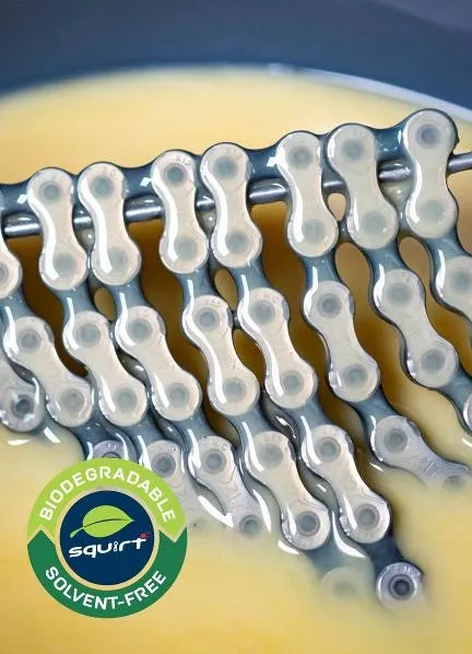 Squirt Performance Hot Wax is a high-performance molten wax chain treatment that was engineered for cyclists who demand efficient, clean operation, extreme durability, and scientifically optimised drivetrain protection. Built from a refined blend of inherently biodegradable paraffinic and synthetic waxes, Squirt Performance Hot Wax offers exceptional penetration, low friction, and long-lasting performance — even under the toughest racing and adventure conditions.