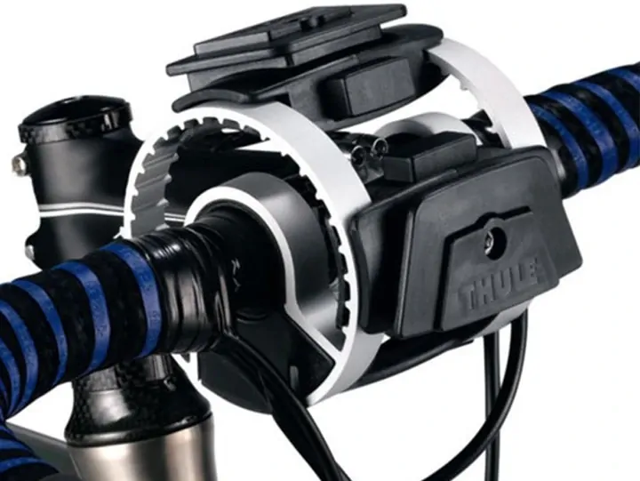 Patent pending handlebar mounting system uniquely has attachments for two bags one forward and one facing the rider.