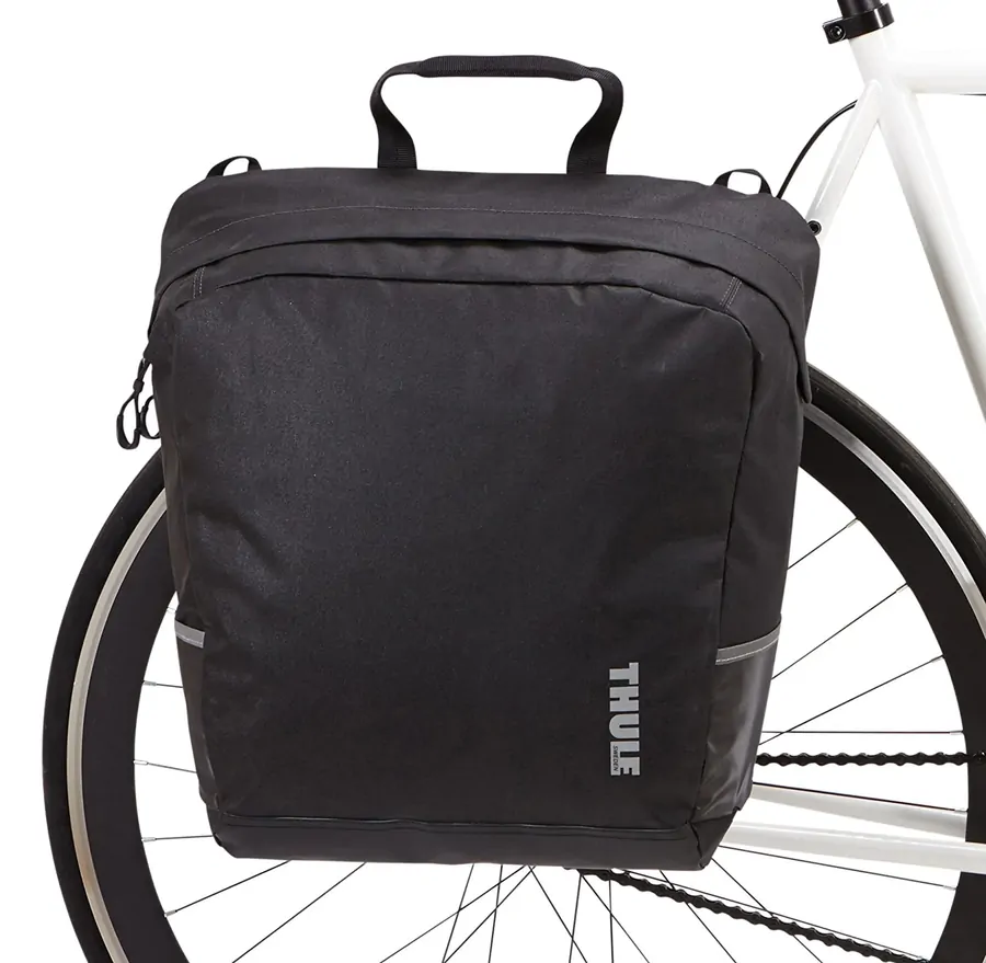 The Thule Pack n Pedal Urban Tote Bag. Urban style bike bags inspired by re-usable totes. Easily transformed into a carry bag with comfortable handles or shoulder strap.