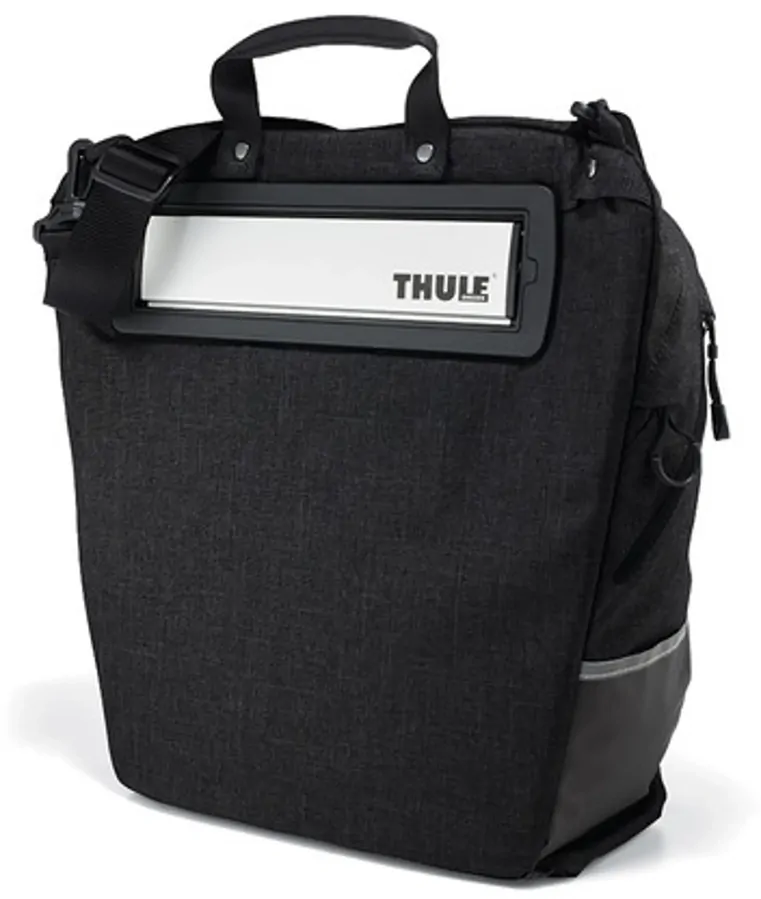 The Thule Pack n Pedal Urban Tote Bag. Urban style bike bags inspired by re-usable totes. Easily transformed into a carry bag with comfortable handles or shoulder strap.