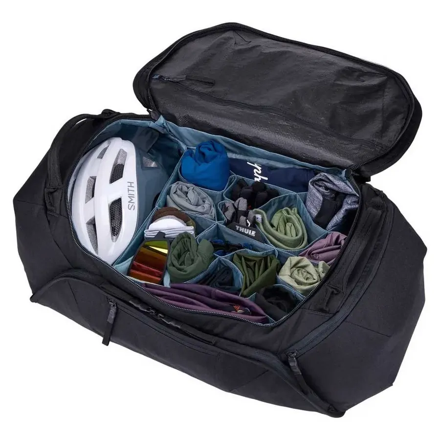 - There´s a reason why the Thule RoundTrip bike duffel is a favorite among cyclists. This bike gear bag is built with infinite organization to house wearables and accessories from one ride to the next. Smart storage solutions include the shoe compartment lined with tarpaulin for easy cleaning, a dedicated helmet compartment, and a lid pocket for sweaty clothing. Packing everything is easy thanks to the bag´s wide mouth opening, and with a capacity of 55L it´s perfect for 3-5 days of road bike or mountain bike gear.